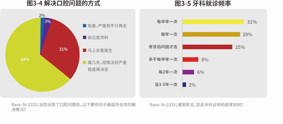 重治疗轻预防:仅39%的消费者能遵循专业建议,保持半年一次口腔检查;同时,当口腔问题真正出现时,仅有31%的消费者选择立即就医,近七成人群存在延误病情风险。这一“被动就诊”现象反映了消费者对口腔健康风险的主动防控意识仍显不足。