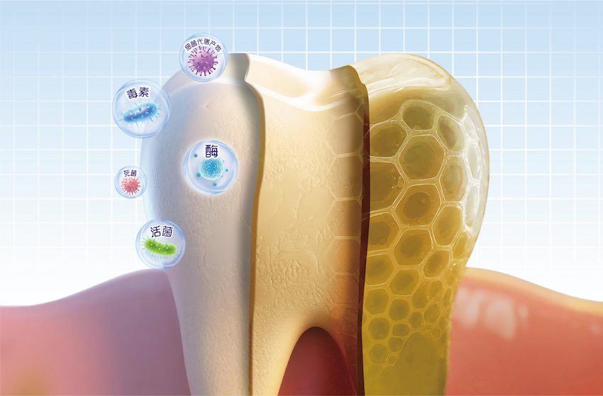 创新解决方案:双锌科技多效协同 根源减少95.3%口腔细菌 牙菌斑是粘附于牙面、牙间或修复体表面的细菌性群体,可视为一个结构紧密的“细菌团队”。它的形成起始于唾液蛋白或糖蛋白在牙面上形成的一层获得性薄膜,获得性薄膜一旦形成,口腔内的细菌便陆续地定植到薄膜上,并逐渐生长繁殖,最终发展为包含多种细菌的复杂群体。牙菌斑细菌能够抵抗宿主防御机制及药物作用,长期存活并持续对口腔健康造成威胁。