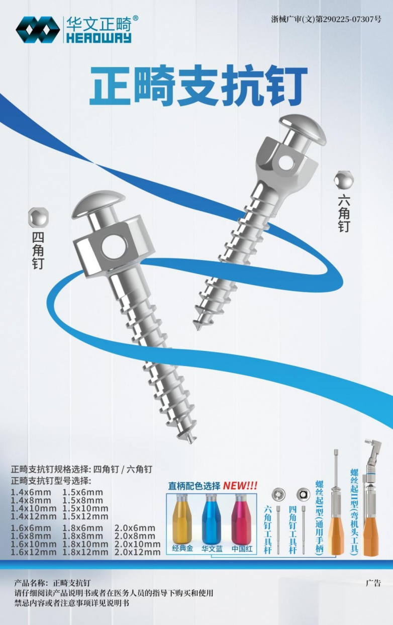 专业支撑与品质承诺 华文知行学院的成立,离不开华文医疗集团在正畸领域的深厚积淀。自2014年起,华文医疗集团就专注于正畸材料研发制造领域,现已发展成为集研发、生产、销售于一体的国家级高新技术企业。 集团的核心产品体系包括自锁托槽与支抗钉等专业器械。自锁托槽凭借其精密的力学结构设计,能够实现持续稳定的矫治力传递,在提升治疗效率的同时,显著改善了患者的佩戴体验。支抗钉产品则在精准控制牙齿移动方面展现出卓越性能,为复杂病例的矫治方案提供了可靠保障。